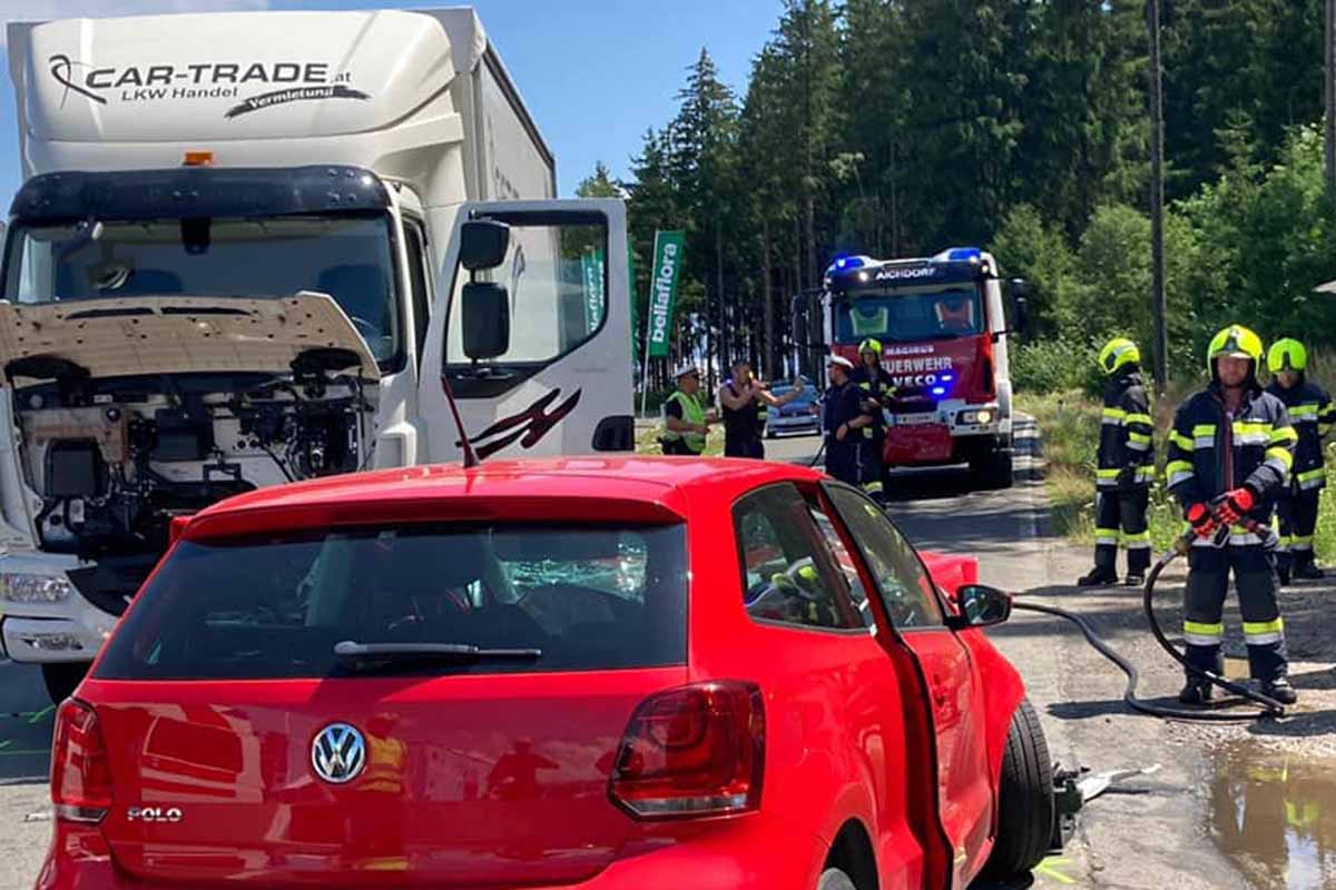 Aus noch ungeklärter Ursache krachte heute eine pkw Lenkerin frontal gegen einen aus Fahrtrichtung Aichdorf kommenden lkw.