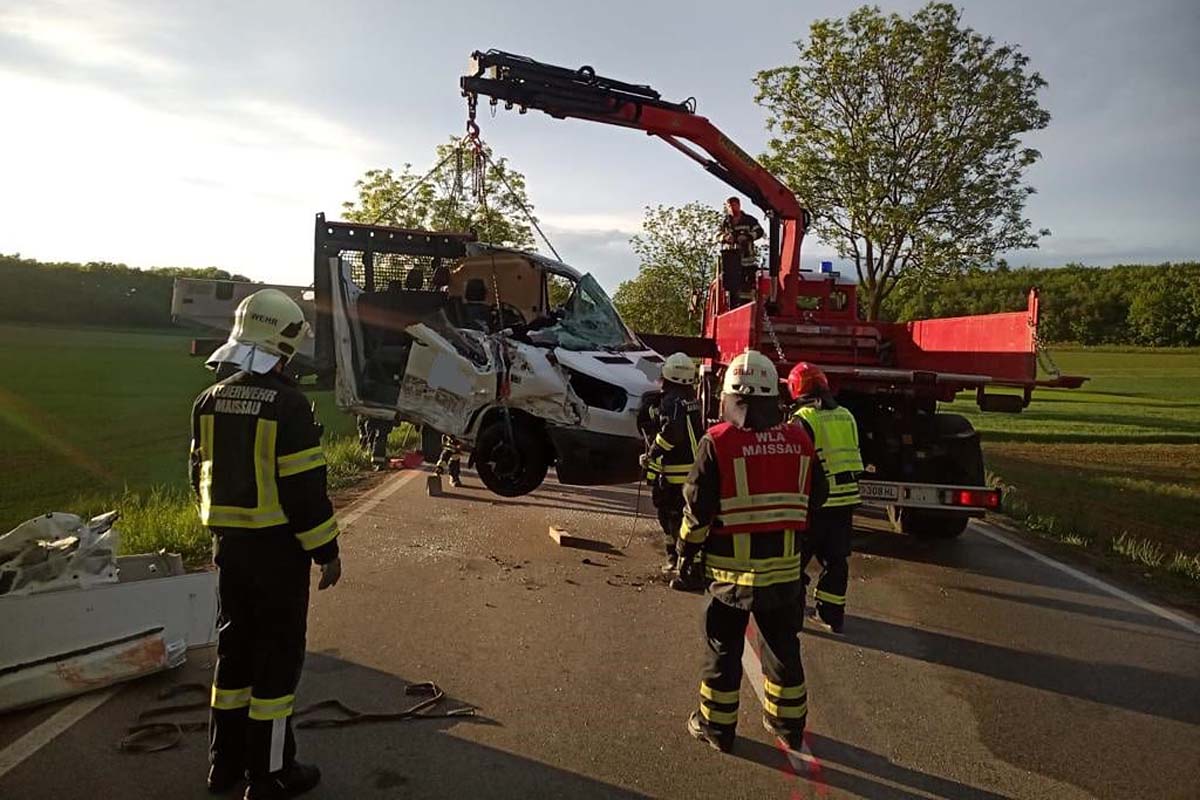 Bei dem Unfall wurde der 53-jährige Beifahrer der Pritsche sofort getötet, ein weiterer Beifahrer wurde schwer verletzt. Auf Grund des Unfalles waren C2 und NAW im Einsatz