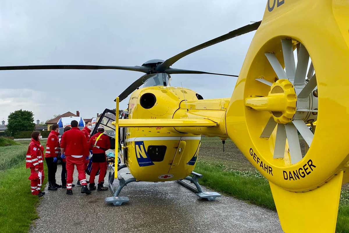 Der Beifahrer erlitt schwere Verletzungen und wurde nach der Erstversorgung mit dem Notarzthubschrauber in das Universitätsklinikum St. Pölten geflogen (Bildquelle: Freiwillige Feuerwehr Dürnrohr)