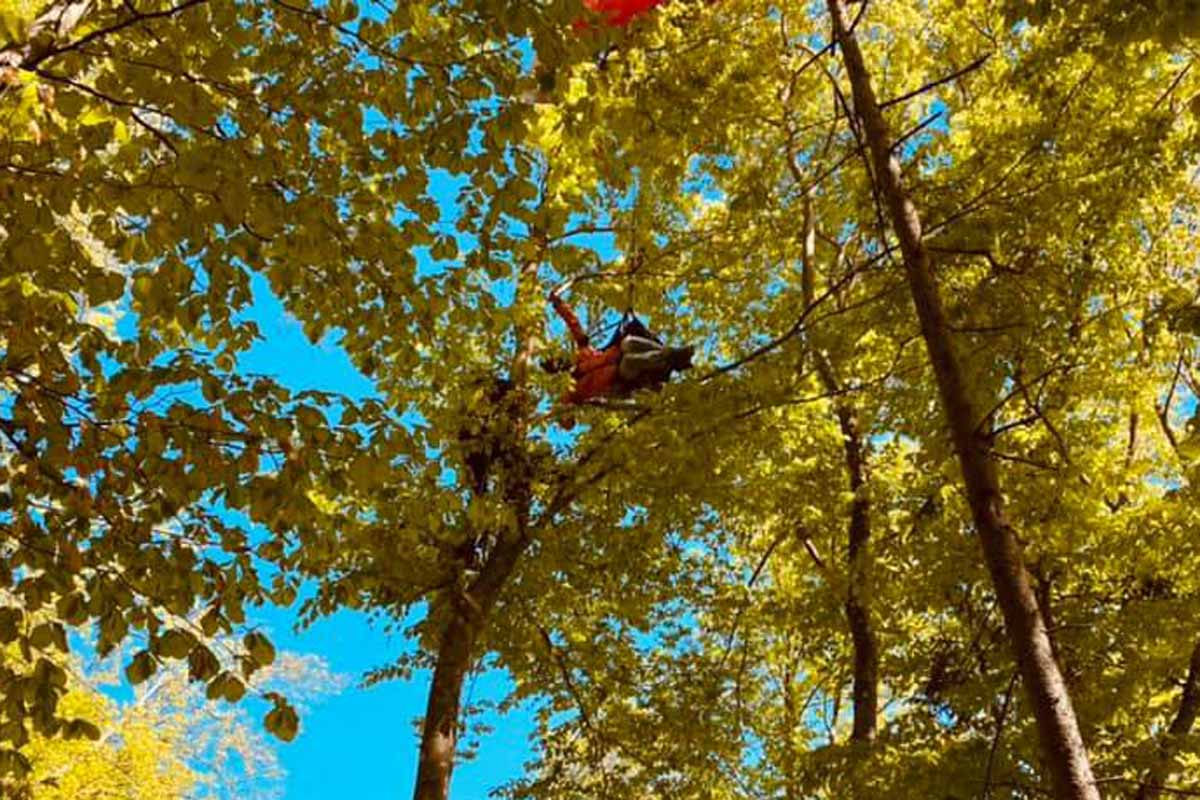 Gestern gegen 13:15 Uhr klappte sein Gleitschirm einseitig ein, wobei er an Höhe verlor und in einer Baumkrone hängen blieb.