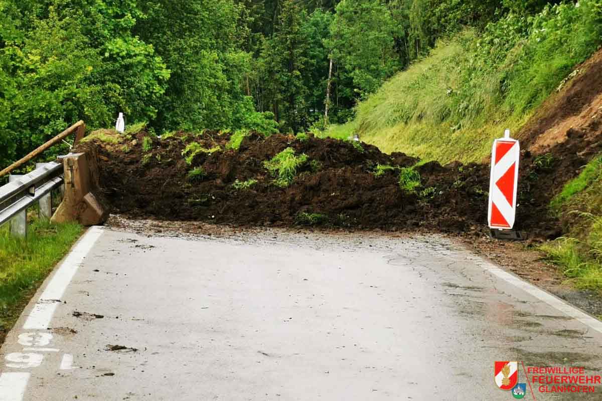 Am 07:06. gegen 16:30 Uhr kam es auf der Ossiacher Tauern Landesstraße nahe des Ortsgebietes St. Nikolai, Bezirk Feldkirchen, aufgrund heftiger Regenfälle zu einer Hangrutschung, wobei ca 30 Kubikmeter Erdmaterial über eine Länge von ca 20 Metern aus der Böschung brach und die komplette Fahrbahn verlegte.