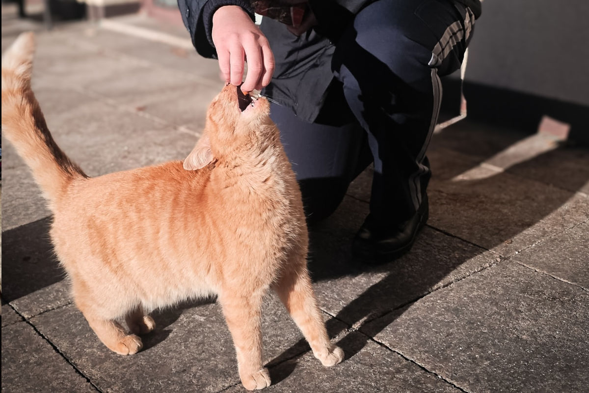Eine regelmäßig vorbeischauende Katze sorgt an der Polizeischule in Feldkirch für gute Stimmung unter den Schülerinnen und Schülern.