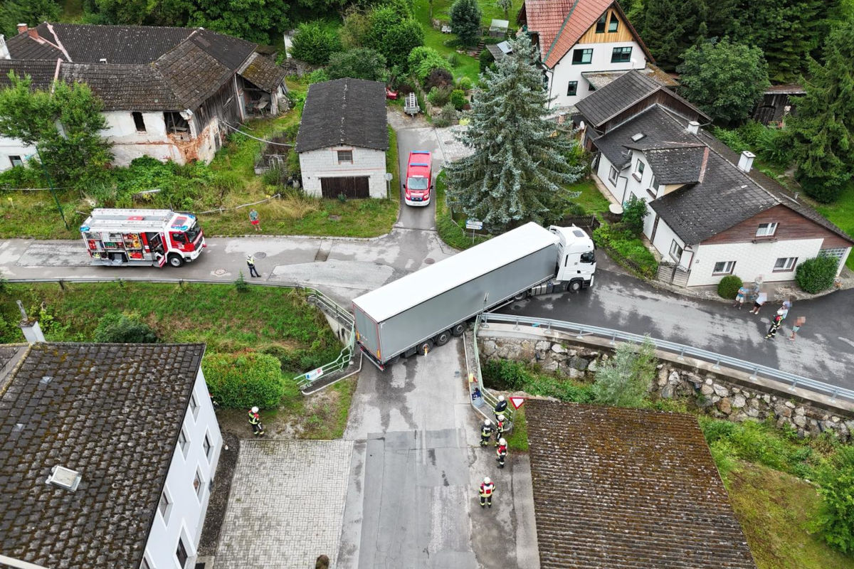 Feuerwehreinsatz in Wieselburg NÖ – Lkw bleibt in Engstelle stecken