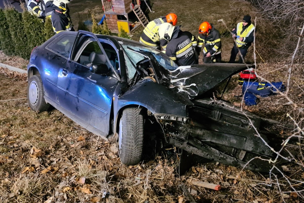Samstagnacht, 12. März 2022, kam ein 21-Jähriger mit seinem Fahrzeug von der Fahrbahn ab. Zwei Personen wurden dabei schwer verletzt.