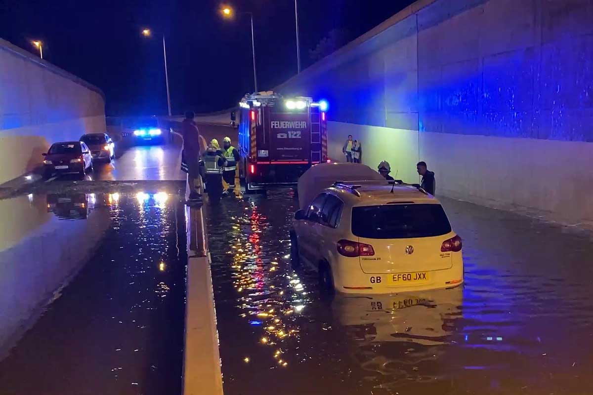 In Wiener Neudorf musste zum zweiten Mal an diesem Tag die Unterführung der Autobahnausfahrt IZ NÖ Süd gesperrt werden. Ein Pkw hatte versucht, durch das Wasser zu fahren und musste von der feuerwehr aus dem Wasser geborgen werden.