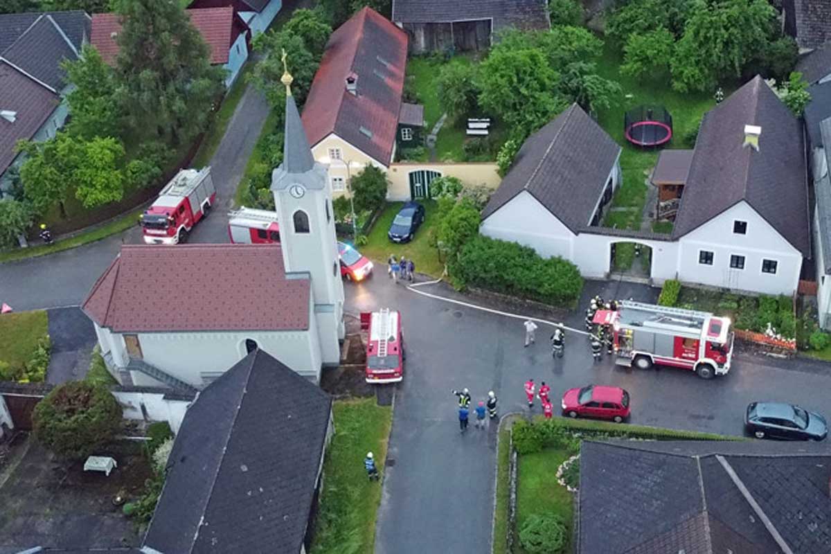 In der Nacht auf Dienstag zog ein Gewitter über mehrere Gemeinden des Bezirkes hinweg. Kurz vor 4 Uhr früh riss ein lauter Donner die Einwohner von Engelbrechts (Gemeinde Kautzen) aus dem Schlaf. Wenig später stieg Rauch aus einem Dachstuhl auf. Ein Großeinsatz von über 100 Feuerwehrleuten folgte.