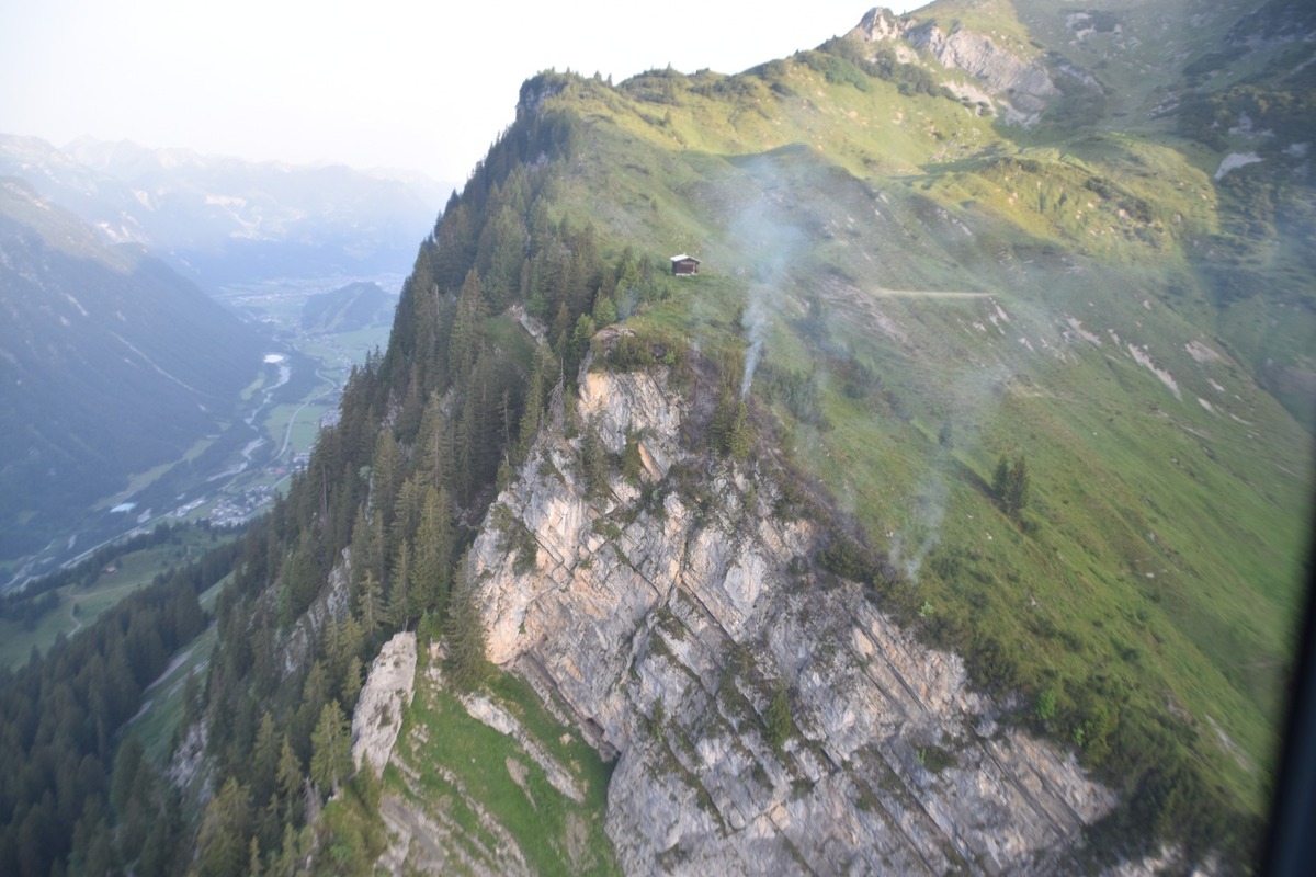 Bei näherer Begutachtung konnte festgestellt werden, dass es sich um einen Brand auf einem Felskamm handelt, welcher nur mittels Hubschrauber erreichbar und gelöscht werden kann. Ein Erkundungsflug durch einen nachtflugtauglichen Hubschrauber fand um 00:45 Uhr statt. Die FFW Dalaas, Braz sowie Nüziders richteten noch in der Nacht eine Einsatzleitung samt Löschwasserreservoir im Bereich Dalaas, Hintergant ein. Am 21.06.2023 gegen 06:00 Uhr flog der Polizeihubschrauber Libelle über das betroffene Gebiet und konnte feststellen, dass es sich um eine etwa 1000m2 große Fläche handelt.