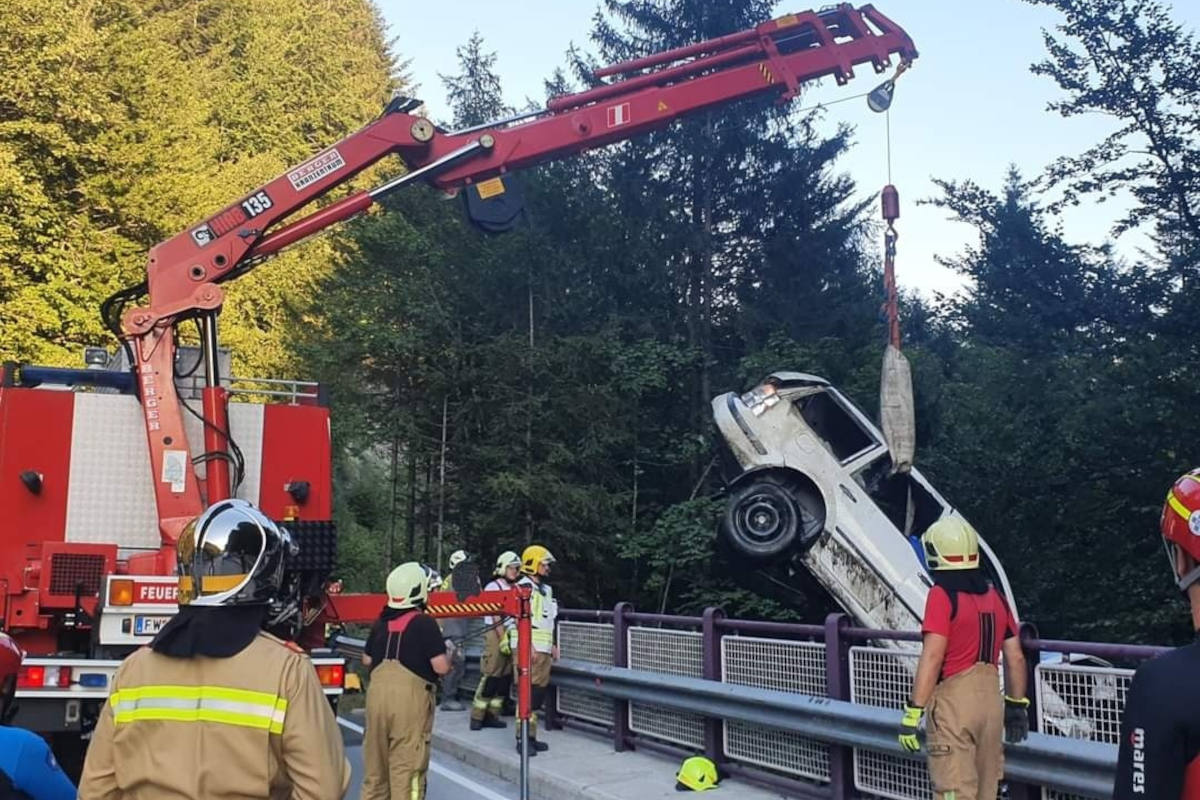 Fahrzeugabsturz aufgrund eines Sekundenschlafes (Bildquelle: Feuerwehren Bezirk Tennengau)
