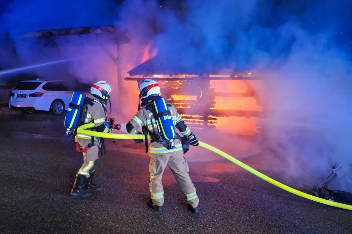 Am Freitagmorgen, 6. Dezember 2025, kam es in Lamprechtshausen zum Brand einer Gartenhütte. Dabei wurden auch ein Carport, ein Wintergarten und zwei Fahrzeuge beschädigt wurden. Es entstand erheblicher Sachschaden.