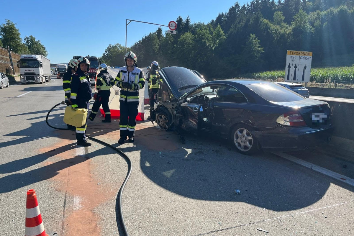 Der Pkw wurde mehrfach gegen die Mittelleitwand geschleudert. (Bildquelle: FF Gleisdorf)