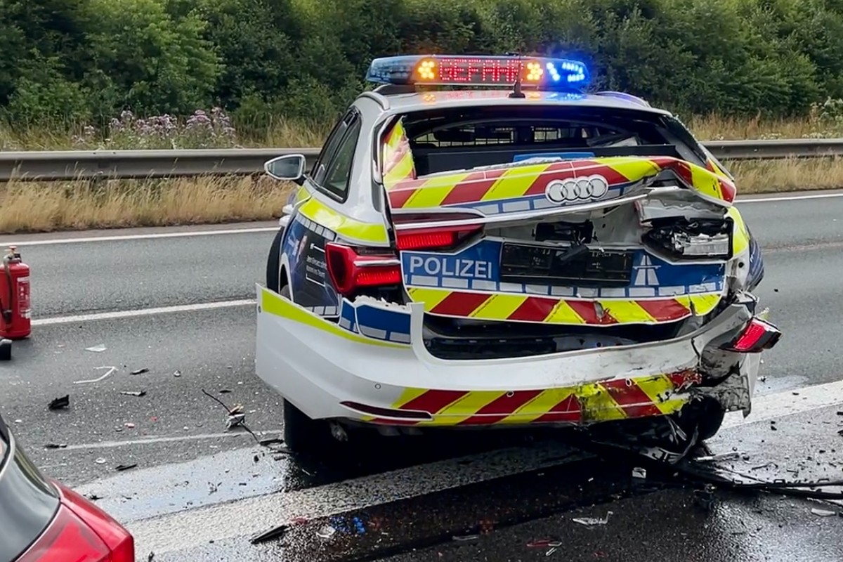 Der Unfallverursacher wurde dabei leicht verletzt und in ein Krankenhaus nach Simmern gebracht. Die beiden Polizeibeamten befanden sich außerhalb des Streifenwagens an der Einsatzstelle und wurden durch en Aufprall nicht verletzt. Beide PKW wurden dabei vermutlich total beschädigt. Der Sachschaden dürfte sich auf einen hohen fünfstelligen Betrag belaufen.