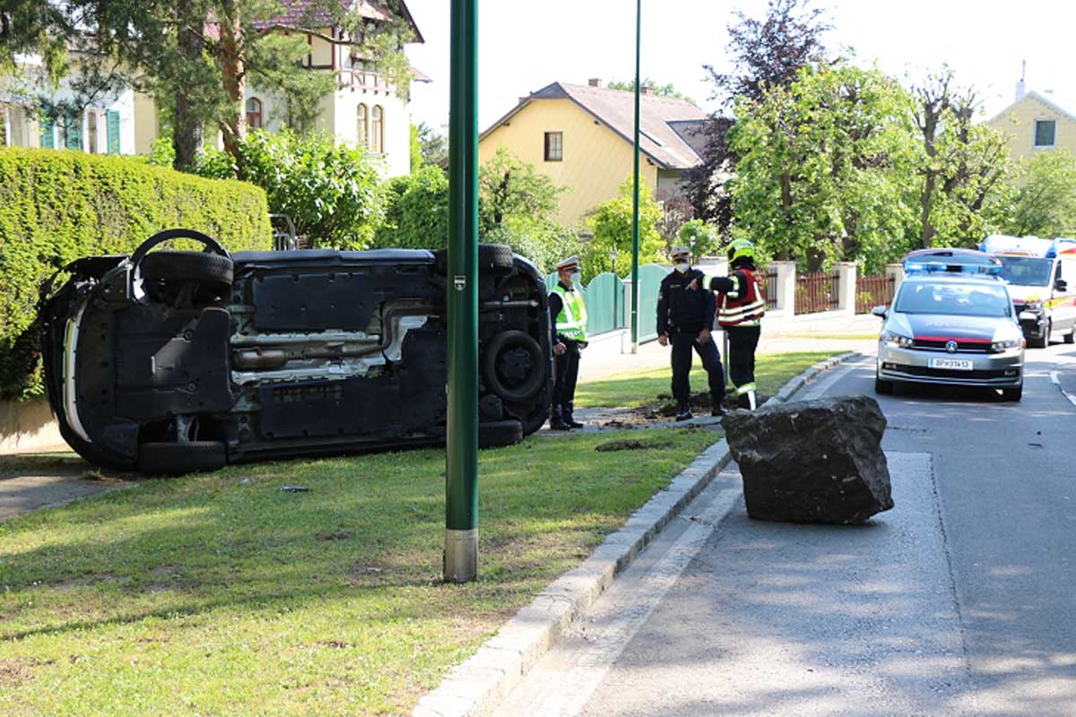 Überschlag nach Kollision mit Begrenzungsstein in Maria Enzersdorf