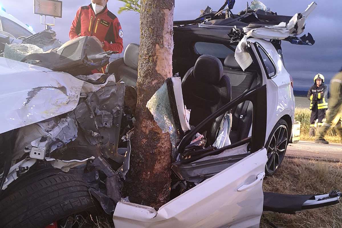 Schwerer Pkw-Crash gegen Baum (Bildquelle: Freiwillige Feuerwehr Markersdorf-Markt)