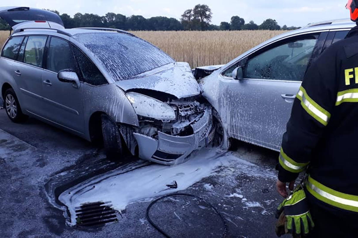 Pkw nach Kollision in Brand geraten in Pucking (Bildquelle: LPD Oberösterreich)