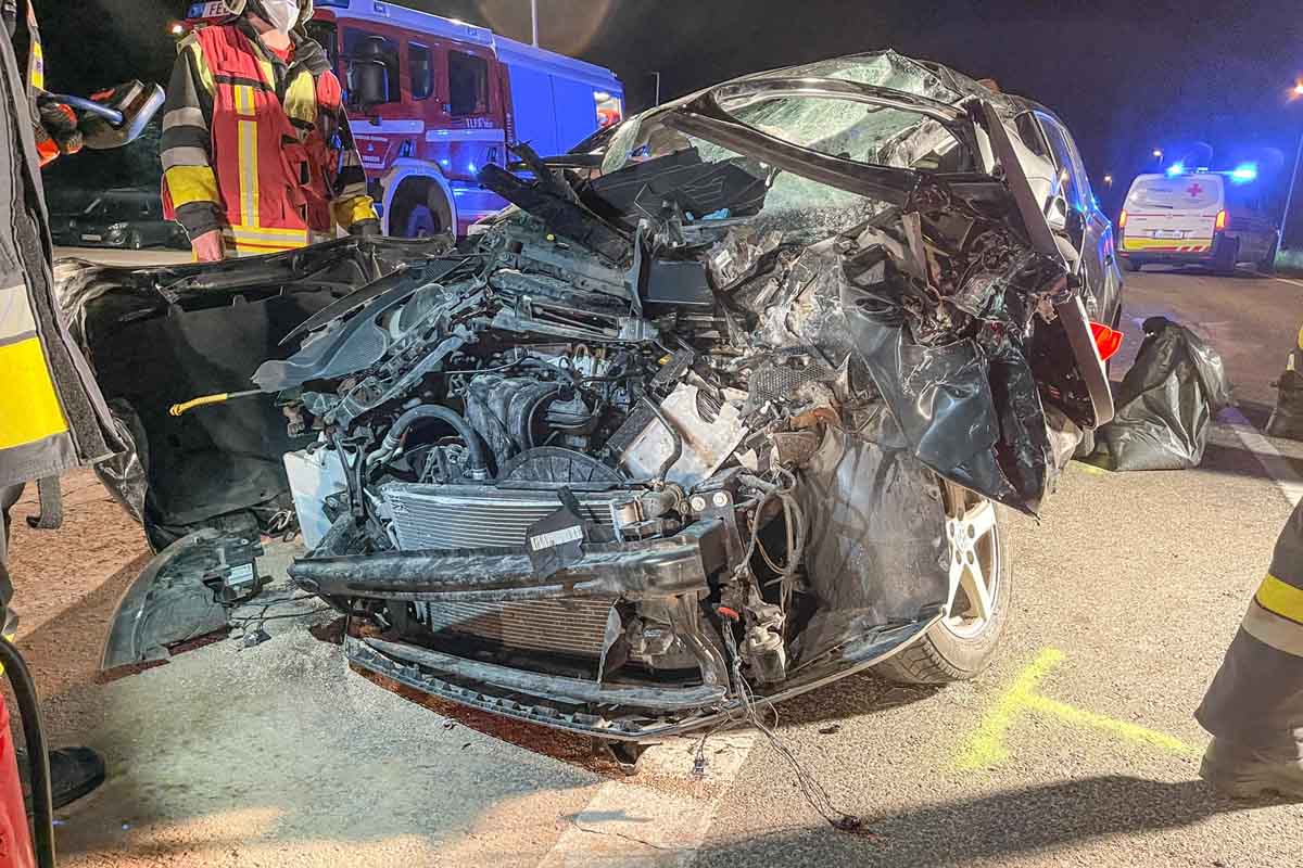 Die 45-Jährige musste aufgrund der schweren Beschädigungen des PKWs mittels Bergeschere von den Kräften der Freiwilligen Feuerwehren Madstein und Traboch aus dem Wrack befreit werden.