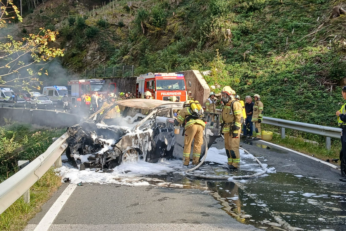Die Fahrzeuge kamen auf der Fahrbahn zum Stillstand, das Fahrzeug des 77-jährigen begann sofort zu brennen. Während sich die Beifahrerin selbständig befreien konnte, wurde der Lenker durch drei Ersthelfer aus dem entflammten Fahrzeug geborgen.