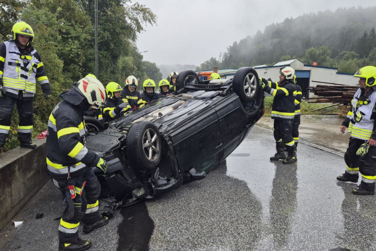 Eine PKW Lenkerin prallte gegen eine Straßenlaterne und überschlug sich mit ihrem Fahrzeug. Sie konnte nahezu unverletzt aus dem Fahrzeug geholt werden.