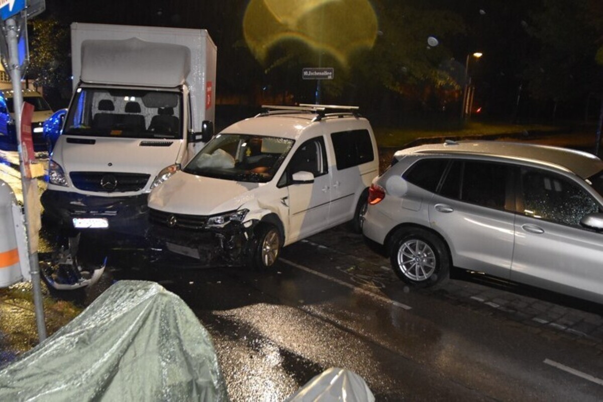 Ein 37-jähriger Autofahrer ist in der Nacht alkoholisiert und ohne Führerschein durch den Park an der Raxstraße gefahren. Dabei beschädigte er mehrere Objekte und kollidierte mit zwei Fahrzeugen.