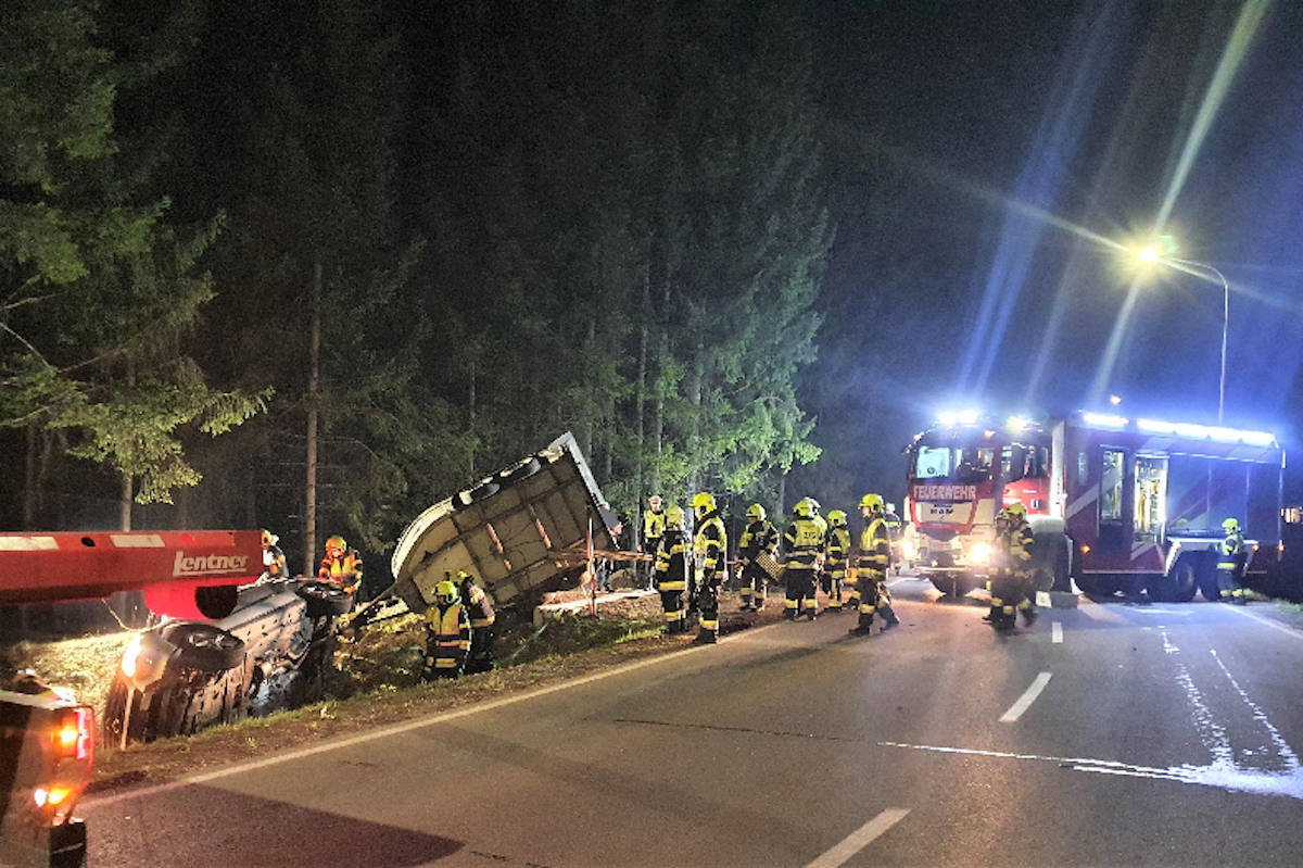 Insgesamt waren 37 Mann mit neun Fahrzeugen der HFW Villach, FF Perau, BTF Infineon im Einsatz. Die Straße war im Zuge der Bergearbeiten von 20:15 bis 22:50 Uhr komplett gesperrt.