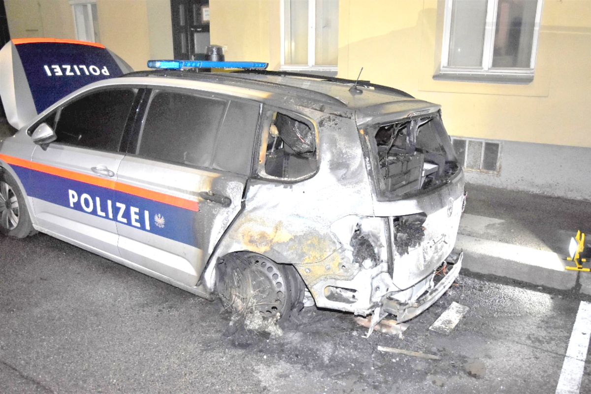 Eine bislang unbekannte Täterschaft steht im Verdacht, in der Nacht auf heute ein Polizeiauto, das vor der Polizeiinspektion Keplergasse abgestellt war, in Brand gesetzt zu haben. Das Feuer dürfte im Bereich des linken hinteren