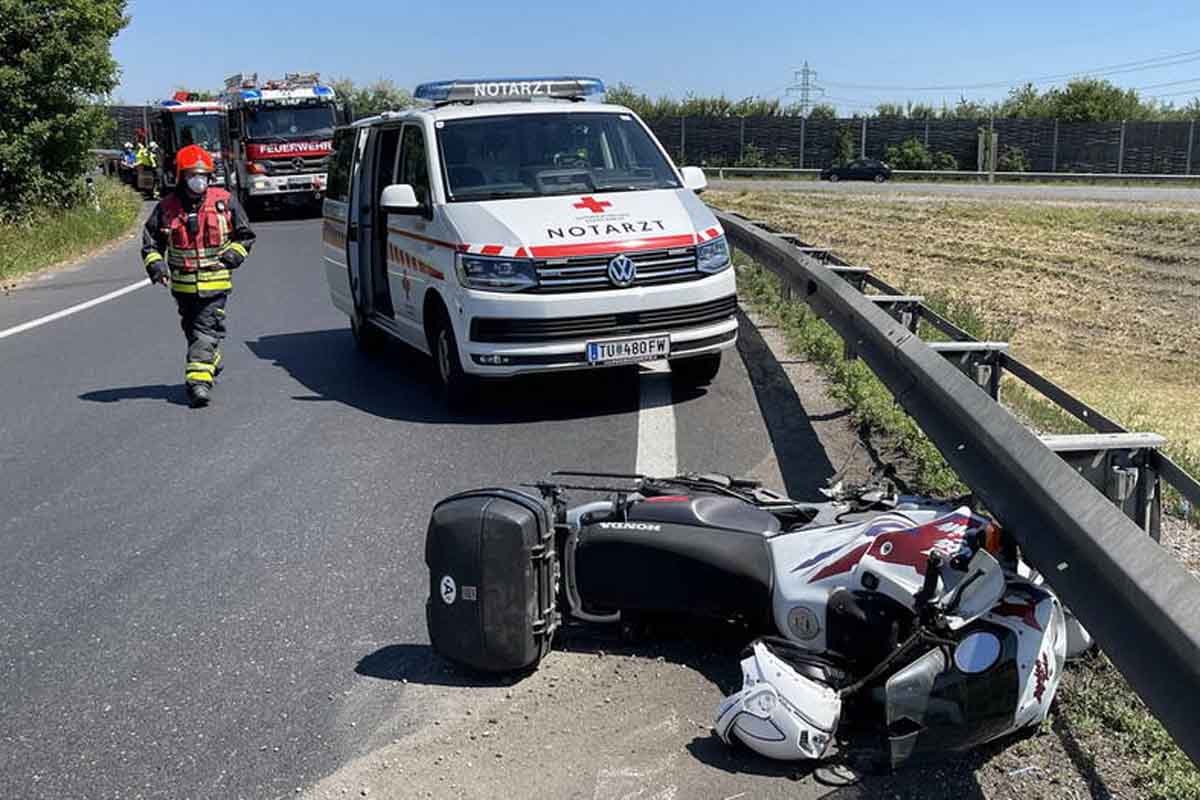 Wiener Neudorf - Biker unter Leitschiene auf der Autobahn gerutscht - tot